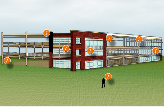 Building materials extracted and manufactured regionally constituted 20% of the total materials value. Recycled steel came from Indiana, brick from Iowa, glass from Ohio, and new furniture was manufactured in Michigan.